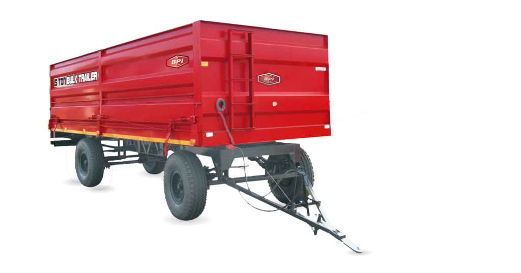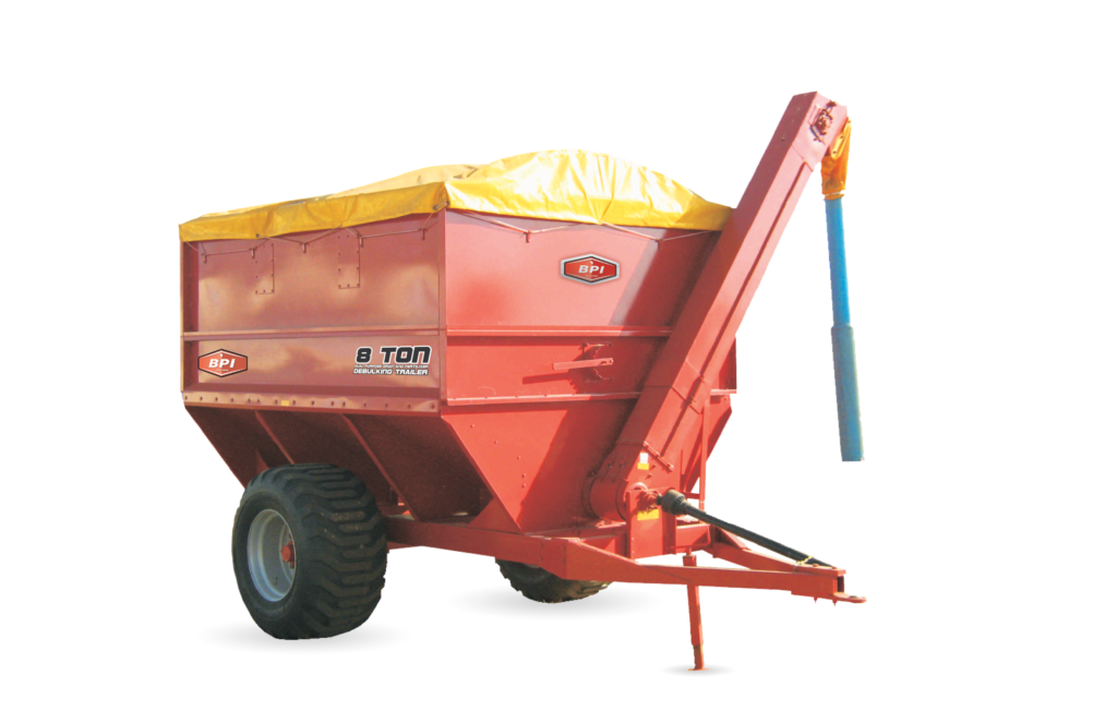 The BPI low speed bulk trailers are reliable and durable. These bulk trailers are available in 10 – 15 ton models. The bulk trailer presents the farmer with an affordable solution of handling bulk loads of grain during harvesting. The removable sides offer the opportunity to convert into a flat deck trailer during the off-season for multi-purpose use. A larger carrying capacity of 15 tons allows optimization of the cost per ton ratio by as much as 50%.
