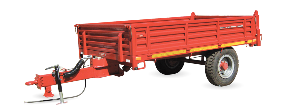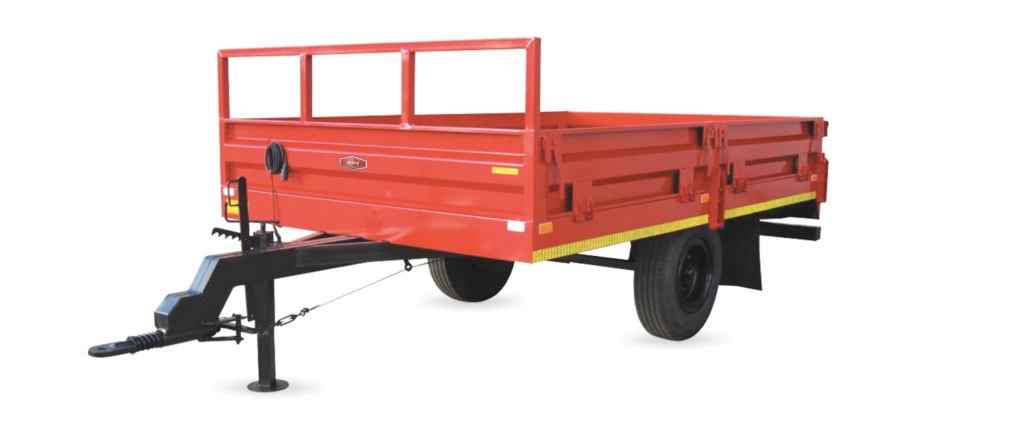 The 4-wheel trailers are suitable for all agricultural farmers and come in sizes ranging from 6 – 10 ton, with or without drop sides. These trailers can be fitted with: a hydraulic braking system and an easily removable upper structure to configure as a flat deck trailer from 6 – 10 ton payload. Modular design enhances the replacement of welded components. Colour coded options are available according to the client’s tractor brand.